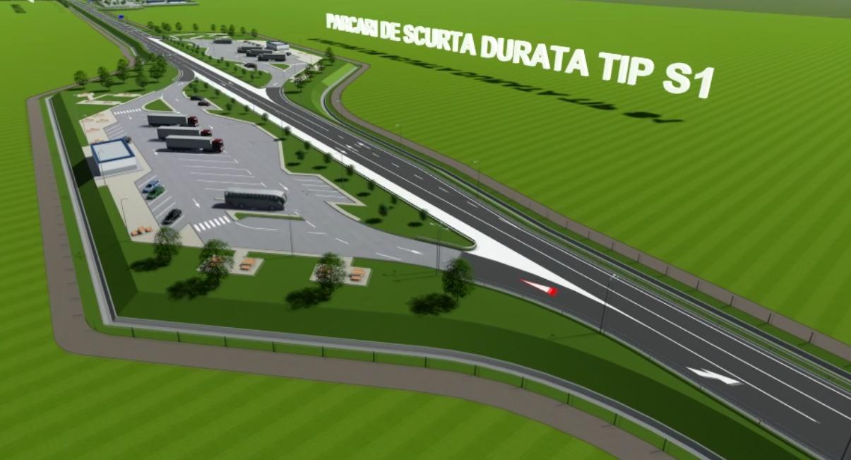 - 2 service areas (with in each of them 25 parking spaces for cars, 16 parking spaces for heavy vehicles and public toilets),