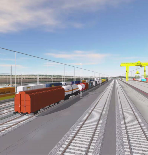 In addition, the planning of an adjoining Rolling Highway Terminal will contribute to increasing the modal share of rail freight transport while reducing greenhouse gas emissions.