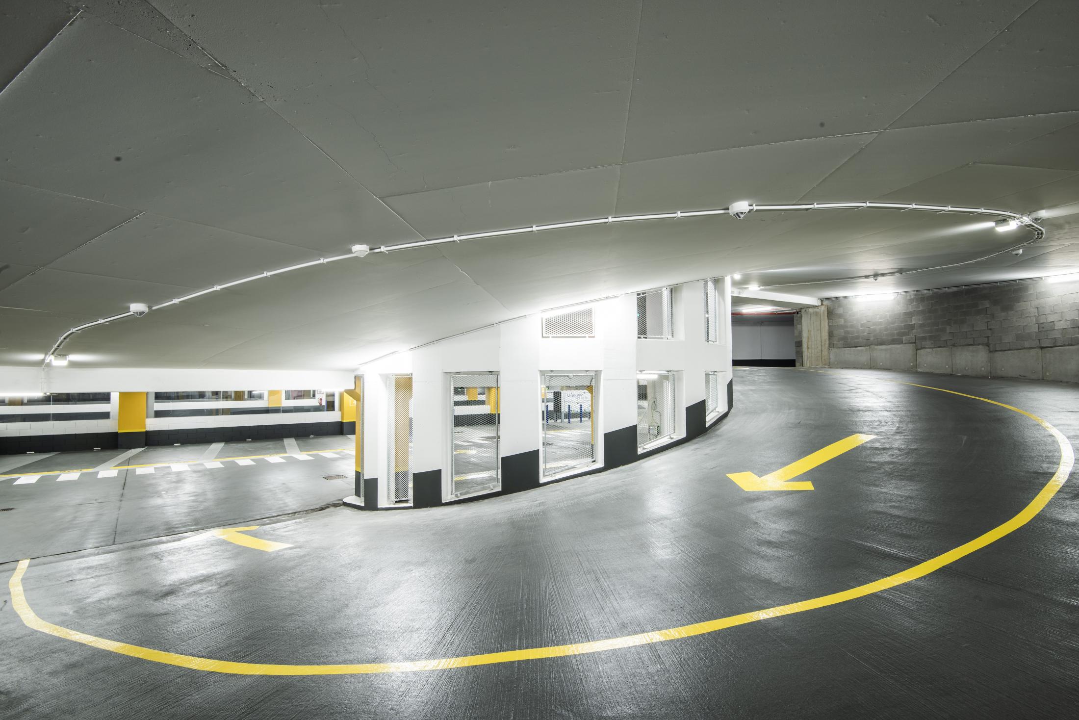 Dispone de plazas para bicicletas y motos, espacios amplios para personas con movilidad reducida y estaciones de carga de vehículos eléctricos.