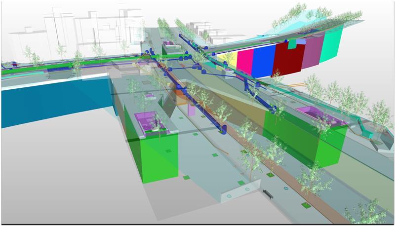 El diseño del proyecto se ha realizado utilizando metodología BIM, aplicando el sistema de clasificación ferroviaria BIM del Railway Innovation Hub.