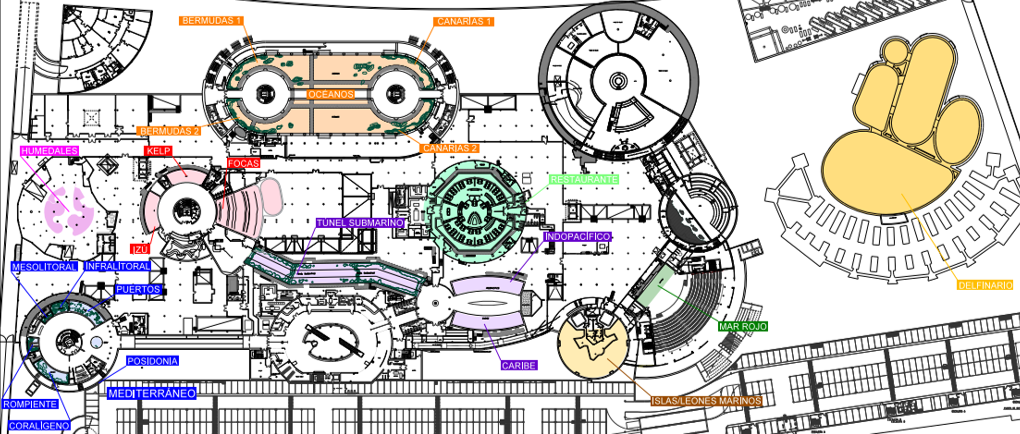 Nuestros servicios incluyen la gestión del proyecto de renovación de los tanques donde están representados los principales ecosistemas marinos del planeta (Mediterráneo, humedales, zonas templadas y tropicales, océanos, Mar Rojo, delfinario, restaurante submarino, etc.).